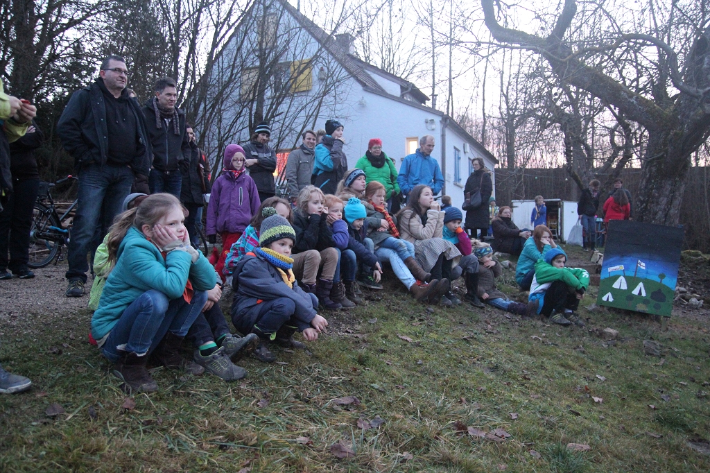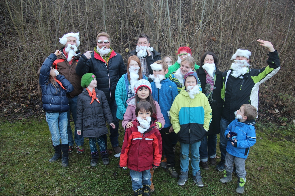 Anschließend startete das Programm, das von den jeweiligen Stufen durchgeführt wurde. Dabei gab es gleich eine Premiere, denn unsere frisch gebackene Bieber-Stufe machte mit ihrer Geschichte zu den vier Kerzen im Advent den Anfang. Darauf folgte ein lustiger Weihnachtsmannbartwettbewerb, bei dem die Wölflinge an einem von ihnen ausgesuchten Partner, einen Wattebart modellieren und befestigen mussten. Danach gab es ein weihnachtliches Personenmemory mit den Jupfis. Als nächstes folgte ein etwas klassischeres Weihnachtsprogramm mit den Pfadis und ihren erbaulichen, selbst geschriebenen Weihnachtsgedichten. Abschließend gaben die Rover ihre etwas alternative und humorvolle Version zur christlichen Weihnachtsgeschichte zum Besten. Dies wurde tatkräftig von Statisten, in einem vorgelesenen Mittmach- und Improvisations-Theater unterstützt.