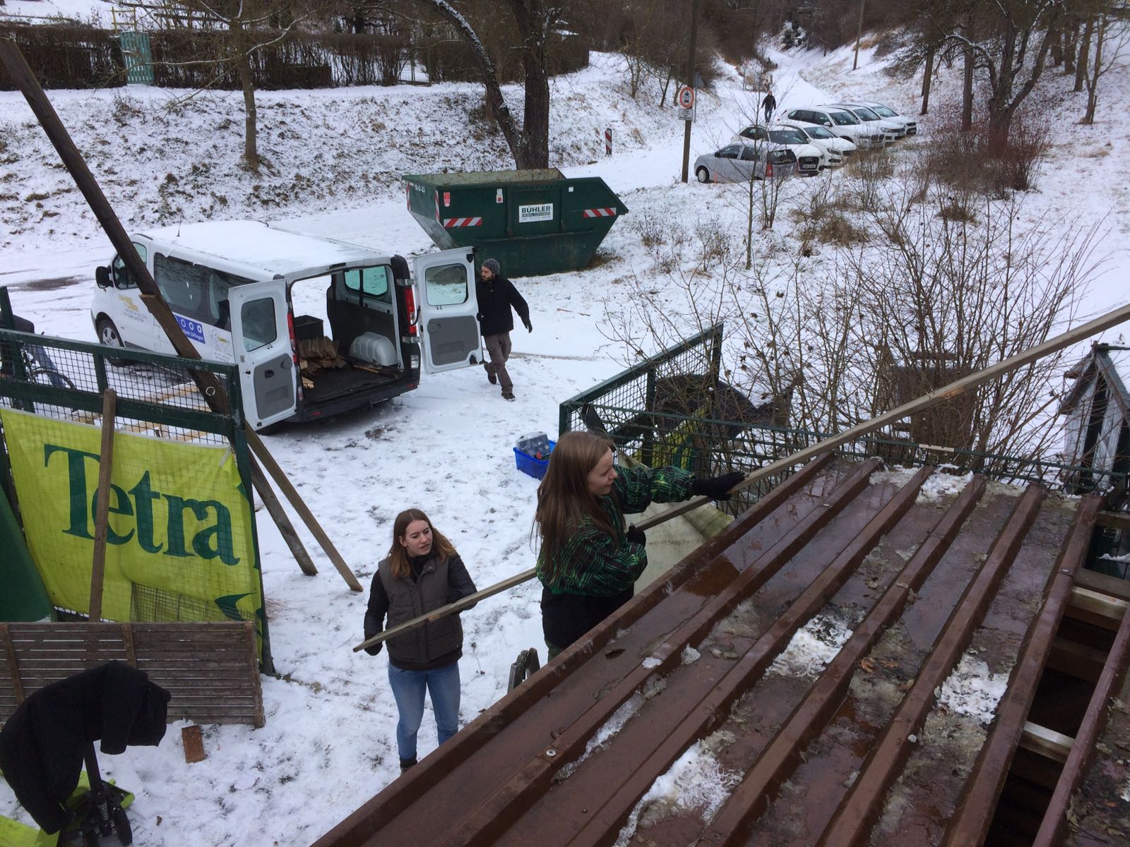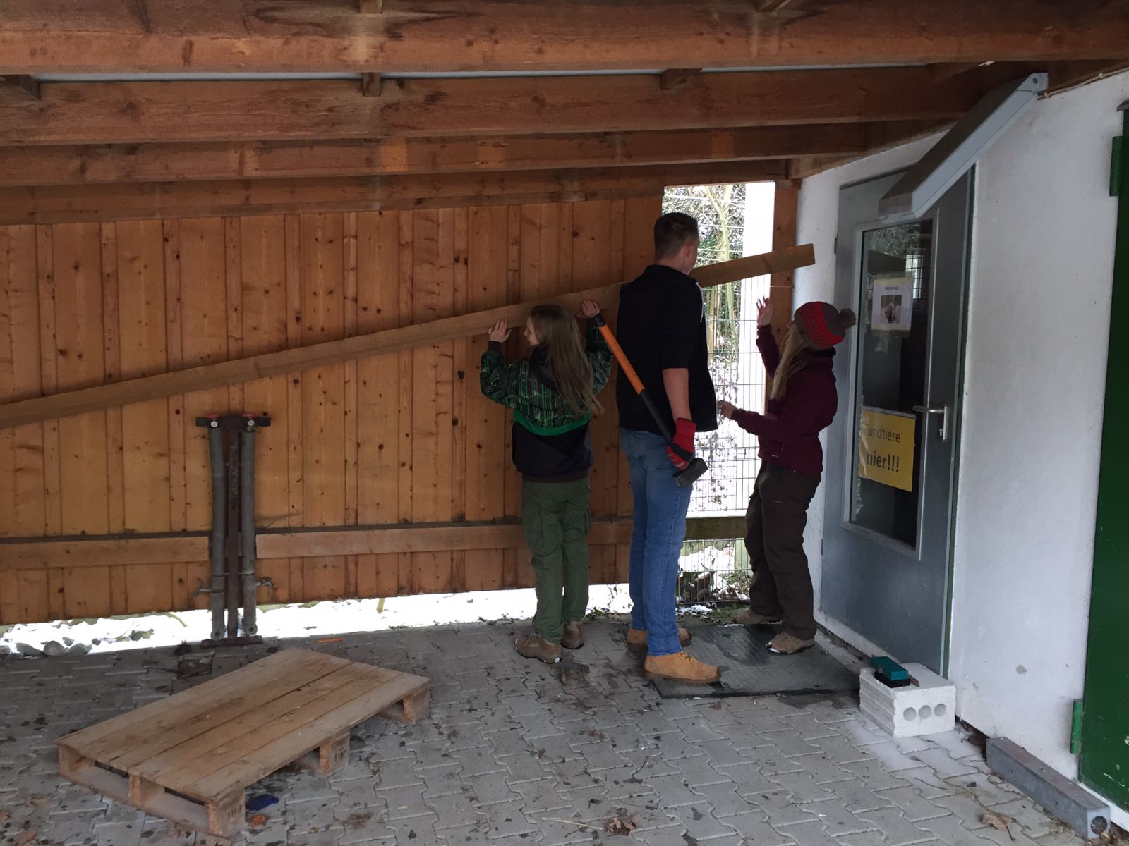Es war kurz vor Weihnachten, als die Rover der DPSG Ulm-Söflingen die Anfrage erhielten, das Ulmer Tierheim beim Abbau der Außengehege zu unterstützen und gleichzeitig ihre Gruppenkasse etwas aufzubessern. Daher machte sich am Samstag, den 17. Dezember eine motivierte Gruppe von 13 Personen auf zum Ulmer Tierheim. Dort gab es einiges zu tun. Zum Beispiel galt es mehrere Hundehütten und Zäune abzubauen, sowie zwei Bäume zu fällen. Die Arbeiten dauerten von 10 Uhr morgens bis Sonnenuntergang an. Einen schönen Abschluss dieses Tages bildete die anschließende Führung durch das Tierheim nach getaner Arbeit.