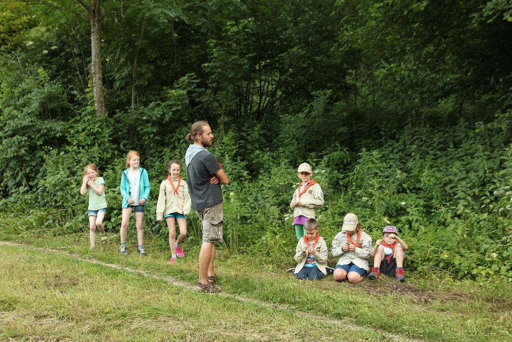 Nach fast endlosem Warten erscheint endlich ein kleines Licht in der Höhle. Elias und Jona kommen mit einer kleinen Kerze zum Ausgang. Verdutzte Gesichter. Mit dieser Überraschung haben sie nicht gerechnet. Jona hat sogar erwartet erst nach den Sommerferien aufgestuft zu werden. „Herzlich Willkommen in der Wölflingsstufe“. Von Felix kriegen die zwei ihr orangenes Halstuch überreicht. Vor ein paar Minuten haben Sie sich am Höhleneingang noch von den Bibern verabschiedet und schon sind sie Wölflinge. Sie strahlen und sind gefühlt um mehrere Zentimeter gewachsen.
