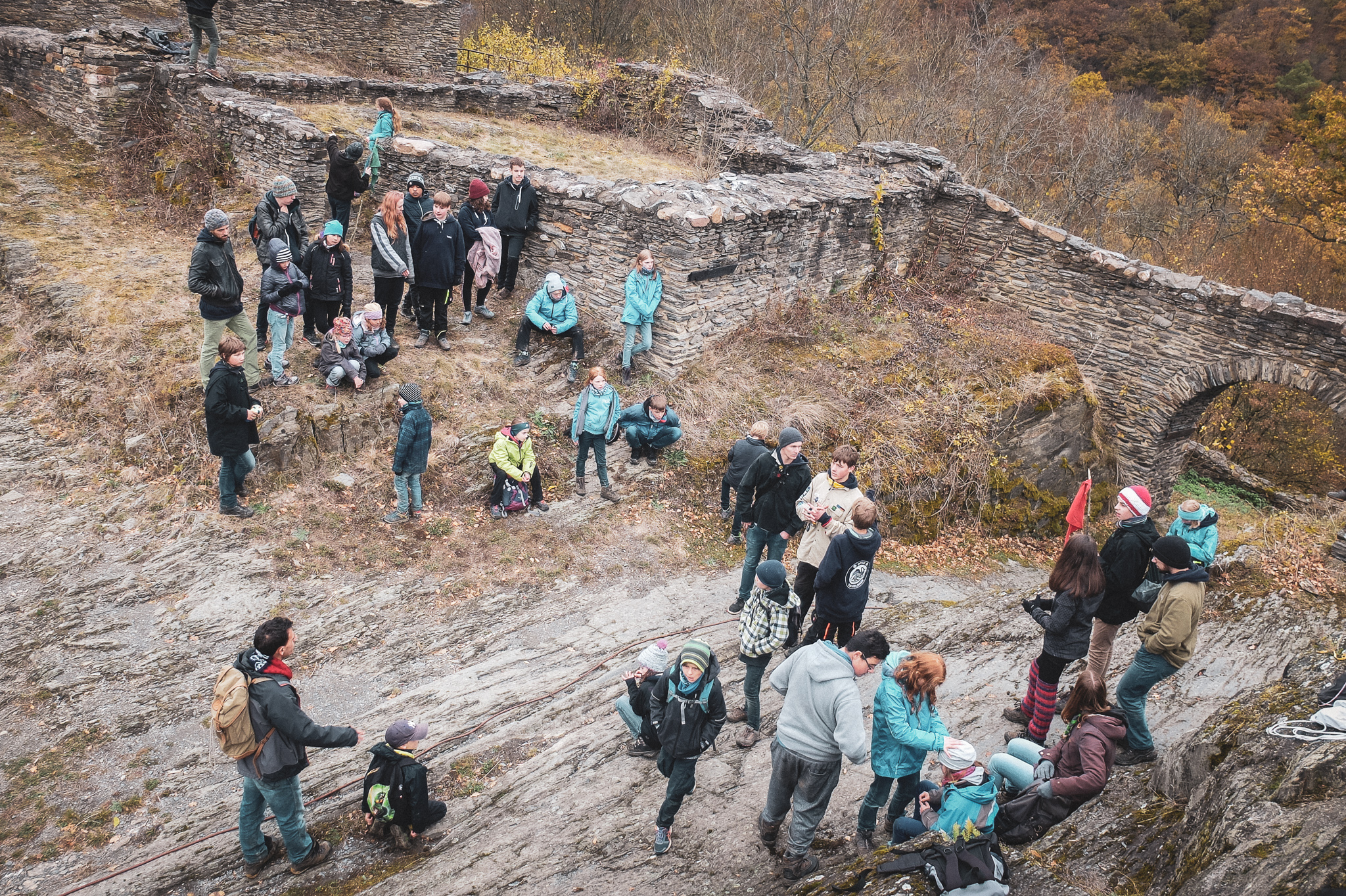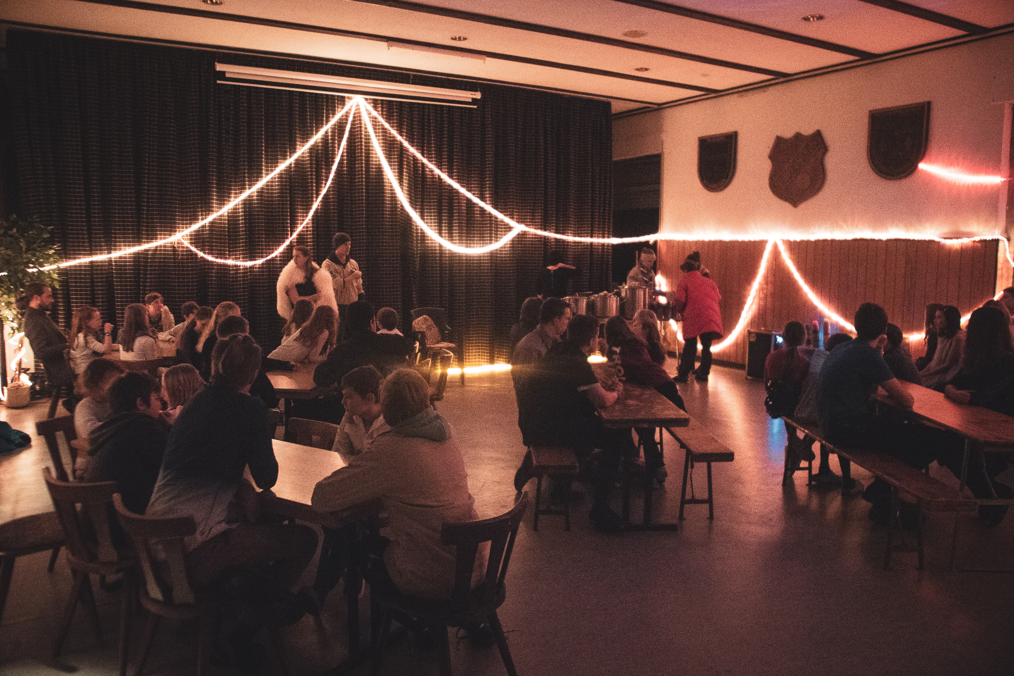 Am Samstag, den 27.10.2018, machte sich die versammelte Mannschaft auf den Weg ins Jugenddorf Teufelsfels bei Kirn, um nur vier Stunden später anzukommen. Dort erwarteten uns mehrere Schlafhütten und eine große Küchenhütte, die alle sofort eifrig bezogen wurden. Erstmal einquartiert, gab es ein vorletztes Mal Abendessen für alle gemeinsam und dann ging es auch schon ins Bett.